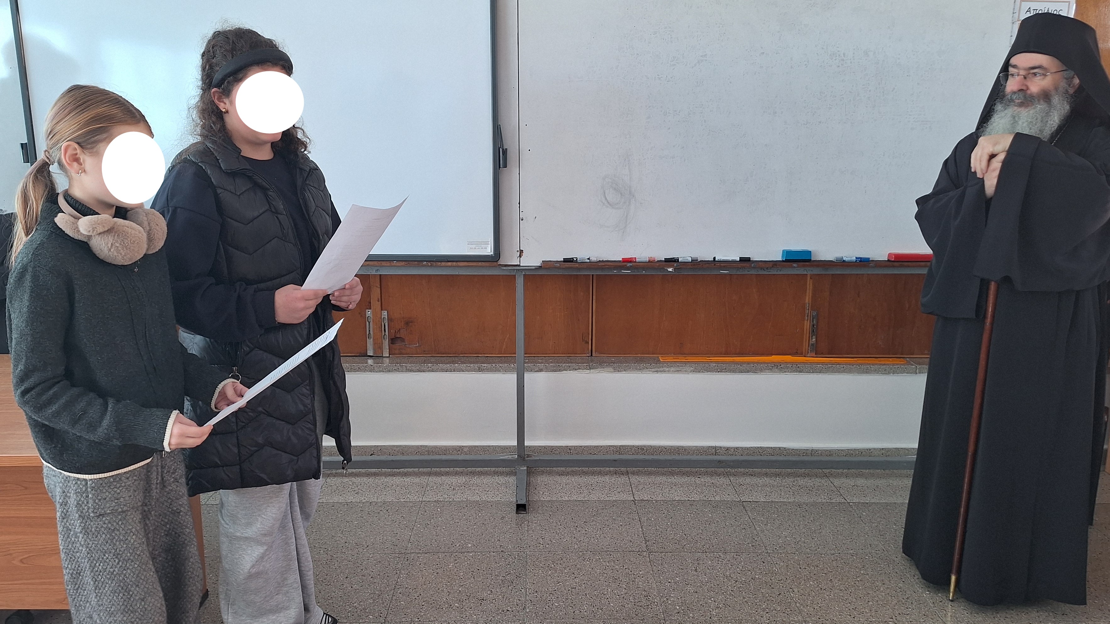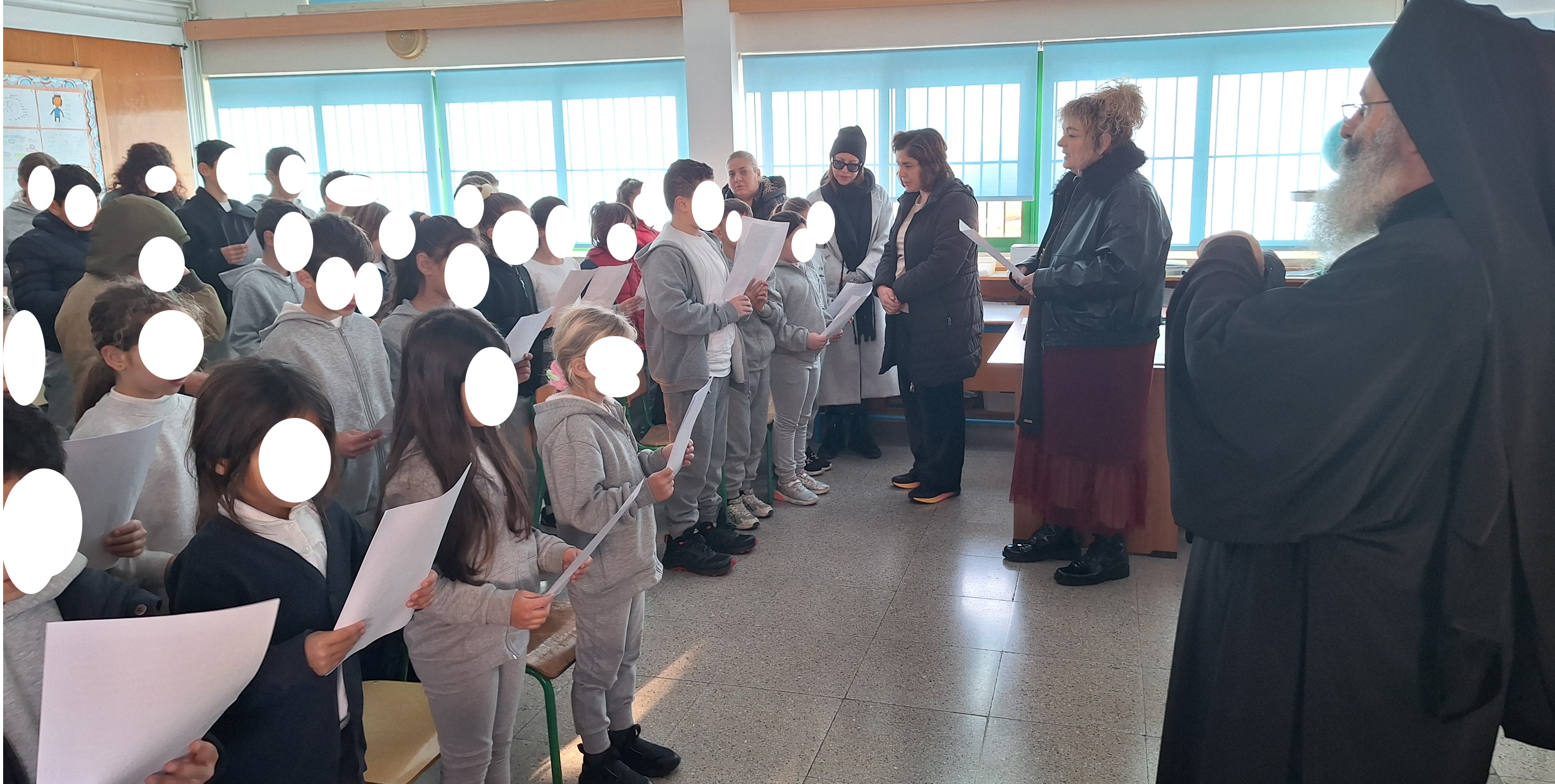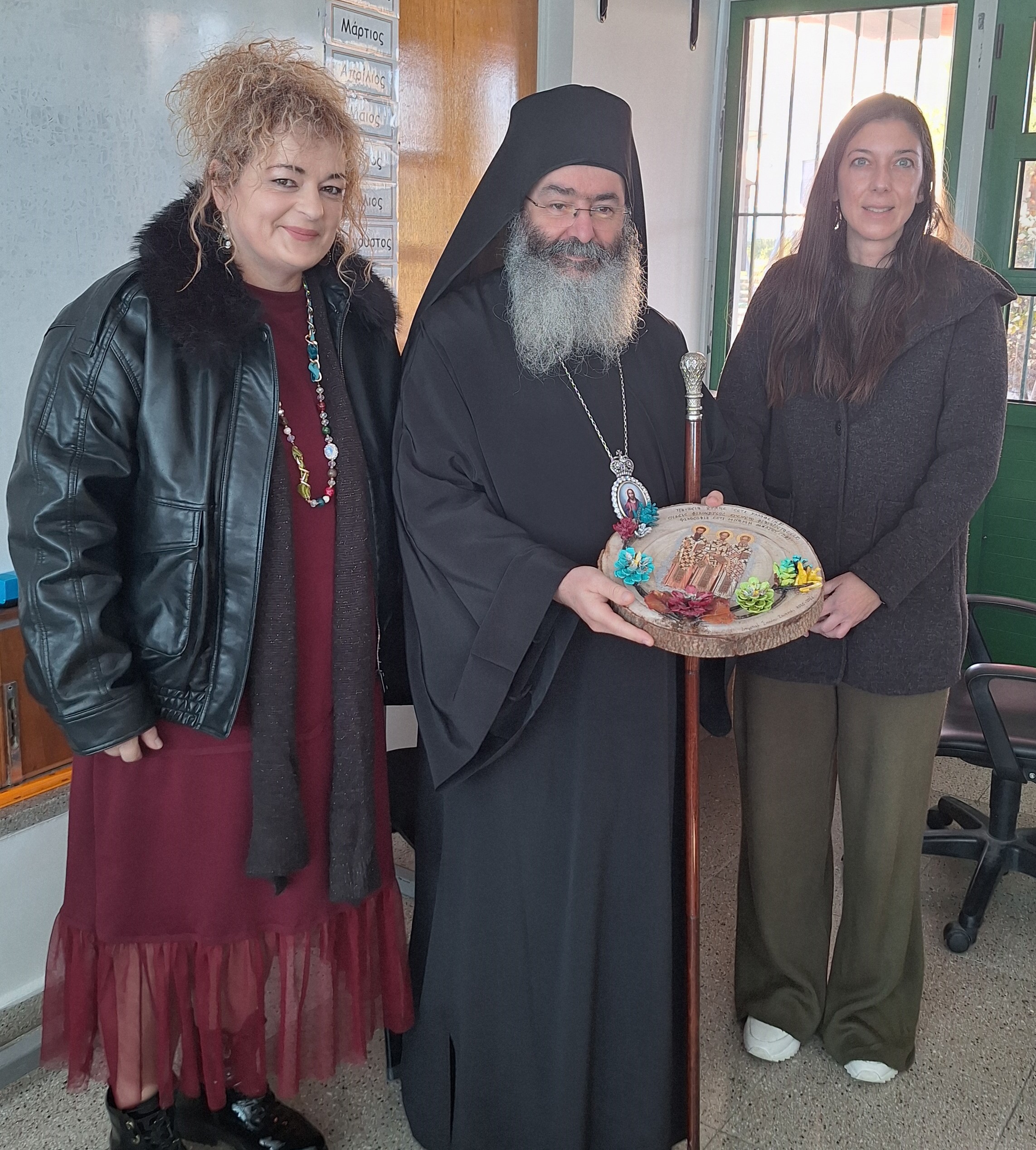 Τα παιδιά υποδέχτηκαν στο σχολείο  τον Θεοφιλέστατο κύριο κύριο Νικόλαο, που μίλησε στα παιδιά και χάρισε από ένα μικροβιβλιαράκι.